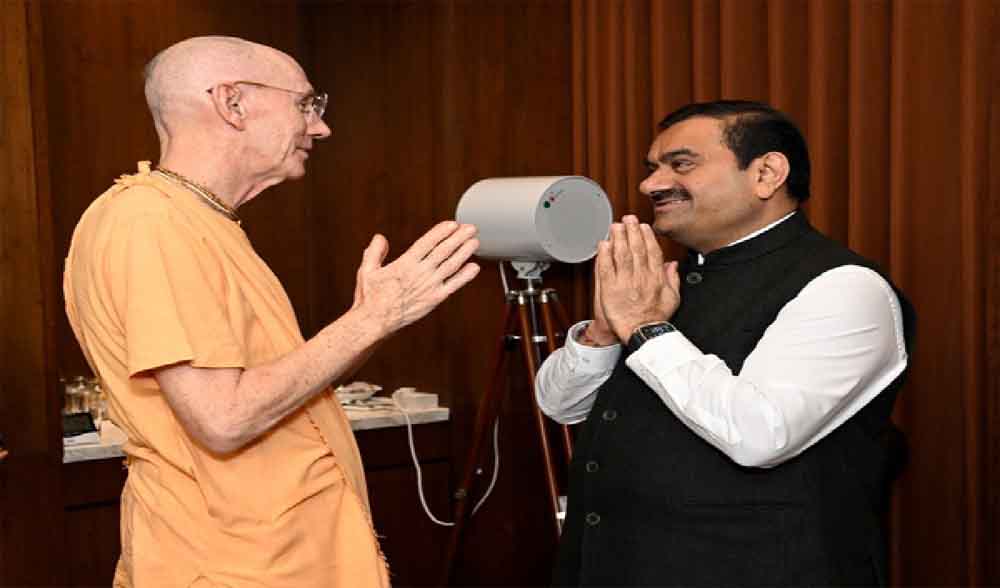 अदाणी समूह के चेयरमैन गौतम अदाणी ने इस्कॉन के गवर्निंग बॉडी कमीशन के चेयरमैन गुरु प्रसाद स्वामी महाराज से मुलाकात की। इस मौके पर उद्योगपति गौतम अदाणी ने कहा कि मैं एक साधारण परिवार से आता हूं। हम समाज की मदद के लिए आप पर निर्भर रहेंगे।