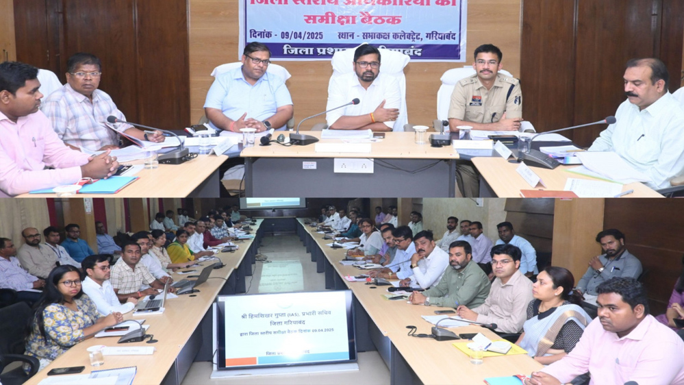 गरियाबंद जिले के प्रभारी सचिव हिमशिखर गुप्ता ने आज जिला प्रवास के दौरान कलेक्ट्रेट सभाकक्ष में जिला अधिकारियों की समीक्षा बैठक ली। उन्होंने बैठक में विभागों में प्रगतिरत कार्यों एवं अद्यतन स्थिति की जानकारी लेकर आवश्यक निर्देश दिये। कलेक्टर दीपक अग्रवाल ने विभिन्न विभागों में चल रहे मुख्य कार्यों की विस्तृत जानकारी दी। साथ ही जिला अधिकारियों ने कार्यों की स्थिति एवं पूर्णता के बारे में विस्तार से बताया। इस दौरान प्रभारी सचिव गुप्ता ने विभाग प्रमुखों को शासकीय योजनाओं के गंभीरतापूर्वक क्रियान्वयन करने के निर्देश दिये। साथ ही लंबित एवं प्रगतिरत कार्यों को भी समय-सीमा में पूर्ण करने को कहा। गुप्ता ने कहा कि वर्तमान में गर्मी के मौसम को ध्यान में रखते हुए जिले के सभी क्षेत्रों में पेयजल की सुचारू आपूर्ति सुनिश्चित की जाए। लोगों को पीने के पानी की समस्या नहीं होनी चाहिए। जल जीवन मिशन का क्रियान्वयन भी सुचारू रूप से हो। उन्होंने पानी की कमी की समस्या एवं उनके निदान तथा जल संरक्षण के लिए लोगों को प्रेरित करने कार्यशाला आयोजित करने के निर्देश दिये। इसमें जिला पंचायत, कृषि एवं वन विभाग सहित जनप्रतिनिधिगण को भी शामिल करने को कहा। इस दौरान बैठक में पुलिस अधीक्षक निखिल राखेचा, वनमण्डलाधिकारी लक्ष्मण सिंह, जिला पंचायत सीईओ जी.आर. मरकाम, अपर कलेक्टर प्रकाश राजपूत सहित जिला अधिकारीगण मौजूद रहे।