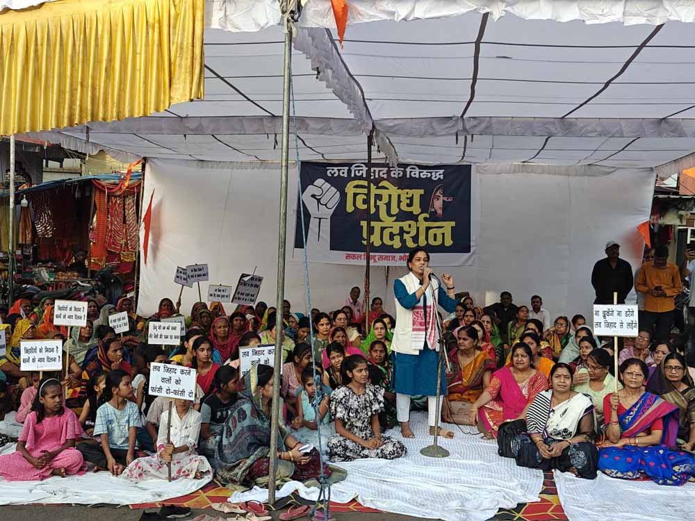 हिंदू महिलाओंं का शहर के 26 स्थानों पर प्रदर्शन, लव जिहाद के खिलाफ आरोपितो को फांसी की सजा की मांग