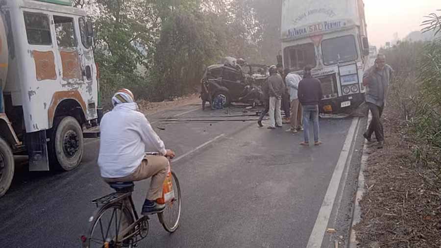 कार में सवार पांच लोगों की मौके पर ही मौत हो गई। जबकि तीन अन्य गंभीर रूप से घायल हो गए। मृतकों की पहचान शिवराज सिंह पुत्र होमपाल सिंह, जिला संभल, शकील पता अज्ञात, बिस्वजीत पता अज्ञात, बहारन पता अज्ञात, डॉ प्रेम पुत्र नंदलाल, तरकुलही जसोपुर थाना खोराबार गोरखपुर के रुप में हुई है।
