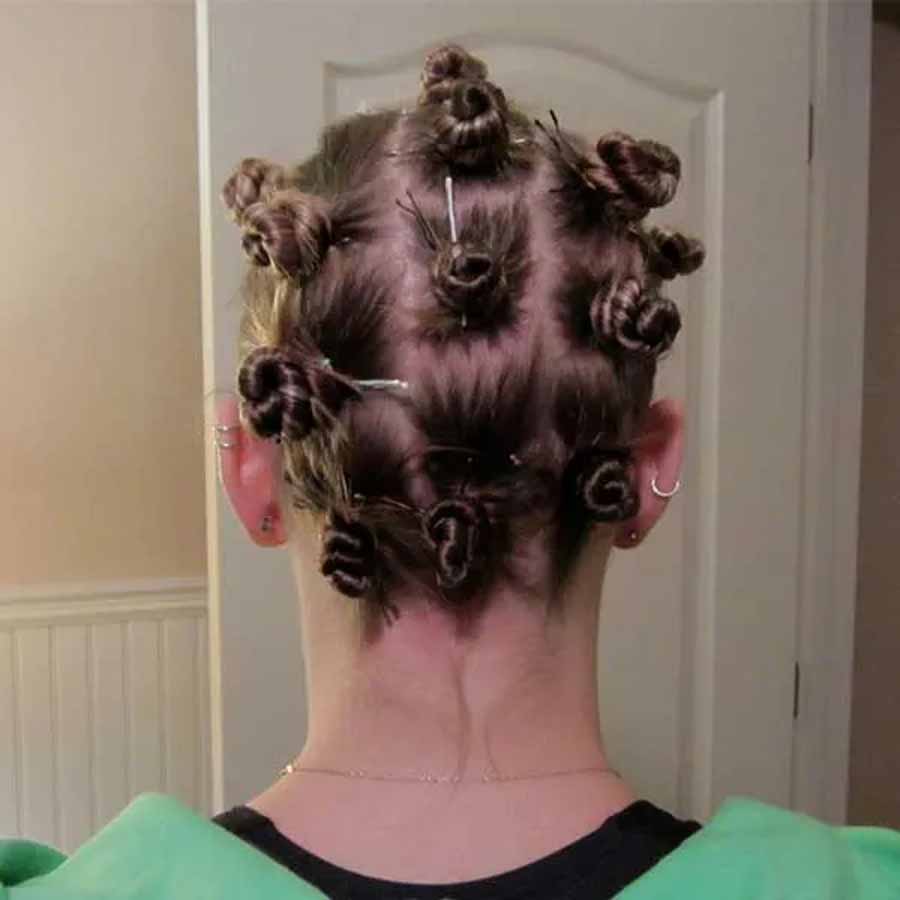 बालों को थोड़ा गीला करें और छोटे-छोटे सेक्शन में बांट लें। हर सेक्शन को ट्विस्ट करके छोटी-छोटी बन बना लें और बॉबी पिन से फिक्स कर लें। 5-6 घंटे बाद इन्हें खोलें, तो आपको सॉफ्ट, बाउंसी और नैचुरल कर्ल मिलेंगे।