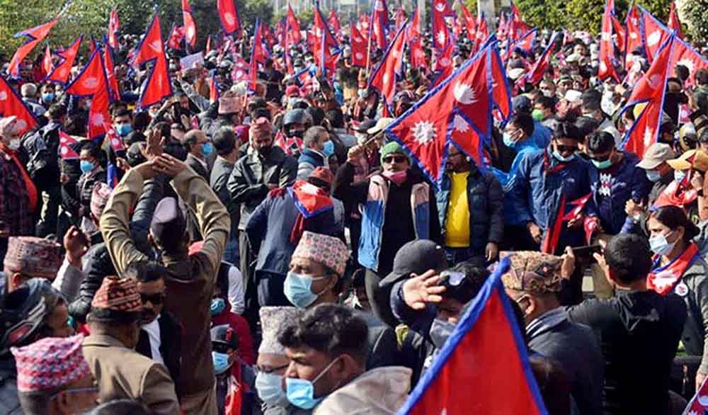 नेपाल में एक बार फिर राजतंत्र की मांग तेज हो गई है। राजशाही का समर्थन करने वाली राष्ट्रीय प्रजातंत्र पार्टी (RPP) ने काठमांडू में एक रैली निकाली। इस रैली में बड़ी संख्या में लोग नेपाल का राष्ट्रीय ध्वज लेकर शामिल हुए थे। पूर्व राजा ज्ञानेंद्र वीर विक्रम शाह ने हाल ही में दावा किया है कि वह एक बार फिर देश के लिए सक्रिय भूमिका में आना चाहते हैं। वहीं बात करें प्रधानमंत्री केपी ओली और नेपाली कांग्रेस चीफ शेर बहादुर देउबा की तो नेपाल का फिर से राजशाही की ओर लौटना संभव ही नहीं है। सीपीए-माओवादी सेंटर के चेयरमैन पुष्पकमल दहल प्रचंड ने भी कहा है कि ज्ञानेंद्र सिंह को जनता को मूर्ख बनाना छोड़ देना चाहिए। उन्होंने कहा, अगर पूर्व राजा को लगता है कि वह बहुत फेमस हैं तो वह अपनी एक पार्टी बना सकते हैं। जनता अगर मौका देगी तो वह फिर से देश की सेवा कर सकते हैं।