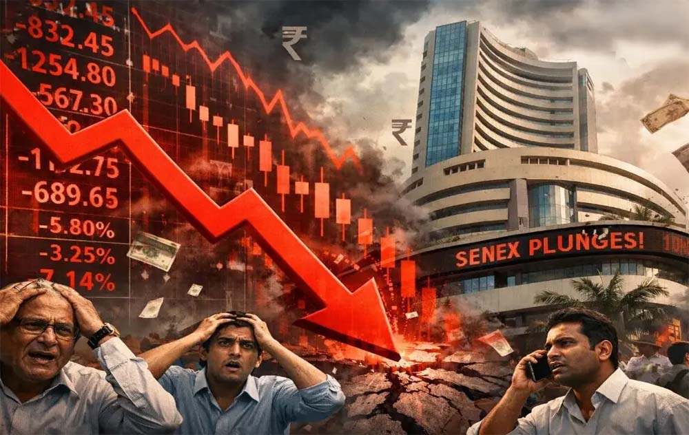 ट्रंप की धमकी का असर: खुलते ही बाजार में 8 लाख करोड़ डूबे, सेंसेक्स 1800 अंक लुढ़का