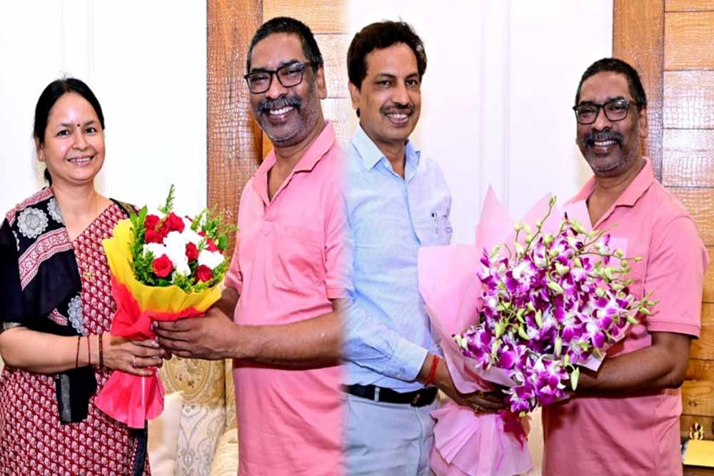 झारखंड के मुख्यमंत्री हेमंत सोरेन से आज यहां कांके रोड स्थित मुख्यमंत्री आवासीय कार्यालय में दो अधिकारियों से शिष्टाचार मुलाकात हुईं।