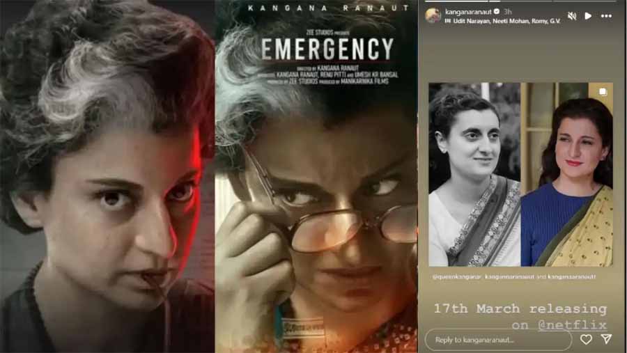 बॉलीवुड अभिनेत्री कंगना रनौत की फिल्म ‘इमरजेंसी’ 17 मार्च से ओटीटी प्लेटफॉर्म नेटफ्लिक्स पर स्ट्रीम होगी।