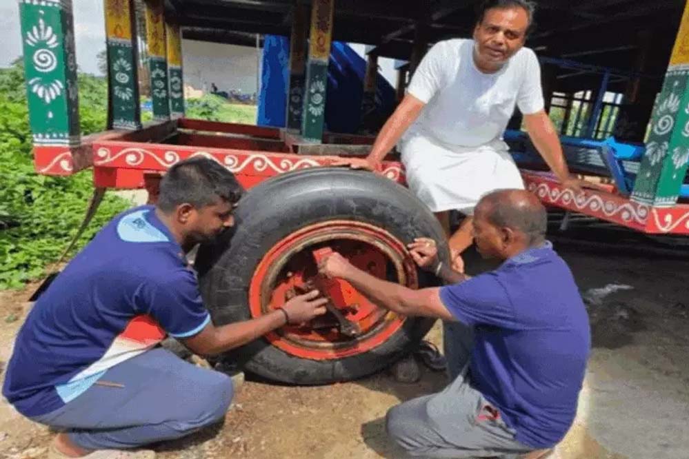 इसके बाद आयोजकों ने कंपनी को पूरी बात समझाई। कंपनी के लोगों को रथ दिखाने के लिए कोलकाता बुलाया गया। तब जाकर कंपनी से चार टायर देने की सहमति बनी।