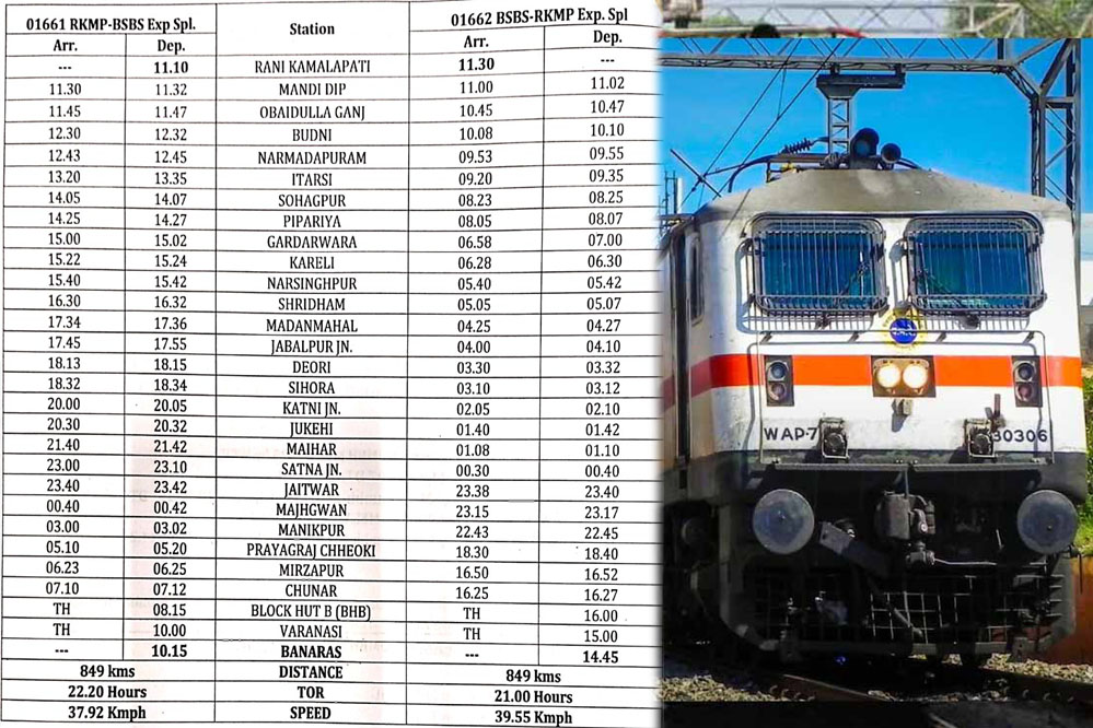 गाड़ी संख्या 01661 द्वि-साप्ताहिक स्पेशल ट्रेन दिनांक 16.01.2025 से 20.02.2025 तक प्रत्येक सोमवार एवं गुरुवार को सुबह 11:10 बजे रानी कमलापति से प्रस्थान करेगी और अगले दिन सुबह 10:15 बजे बनारस पहुँचेगी। (06 सेवाएं)