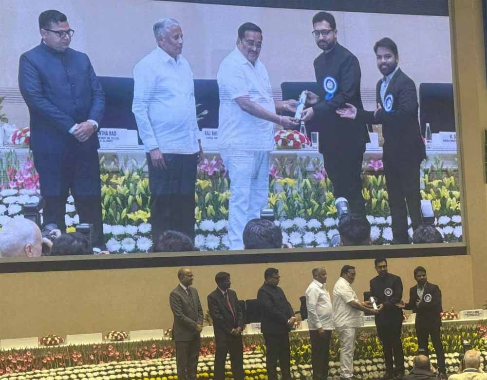 राष्ट्रपति श्रीमती द्रौपदी मुर्मू के हाथों कलेक्टर श्री विनय कुमार लंगेह ने पुरस्कार ग्रहण किया