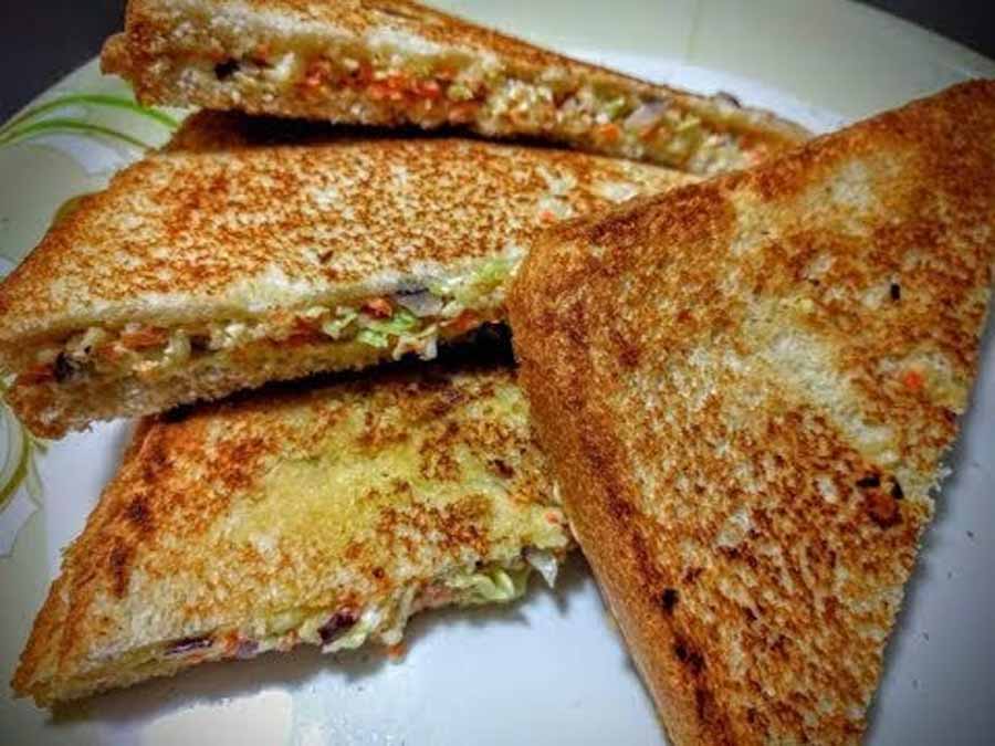टोस्ट किए हुए ब्रेड स्लाइस पर तैयार किए गए क्रीमी वेज मिश्रण को समान रूप से फैलाएं। आप चाहें तो इसमें हरी चटनी या टोमैटो केचप की एक परत भी लगा सकते हैं।