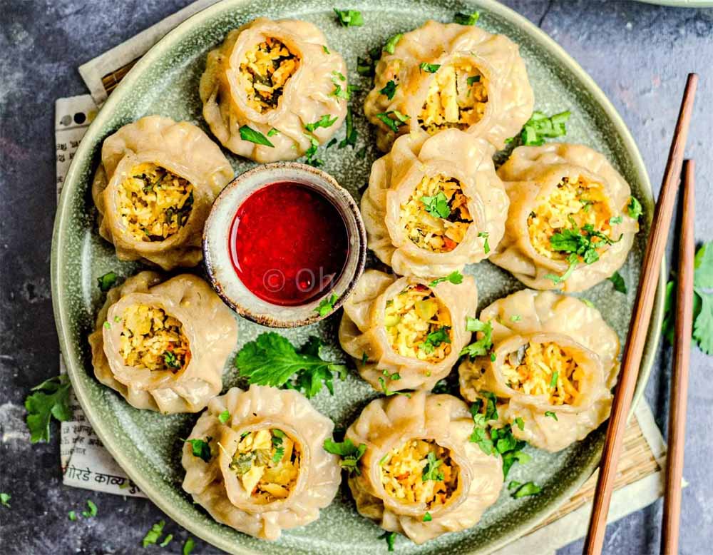 गरम-गरम पनीर मोमोज को लाल तीखी चटनी या मेयो सॉस के साथ सर्व करें।