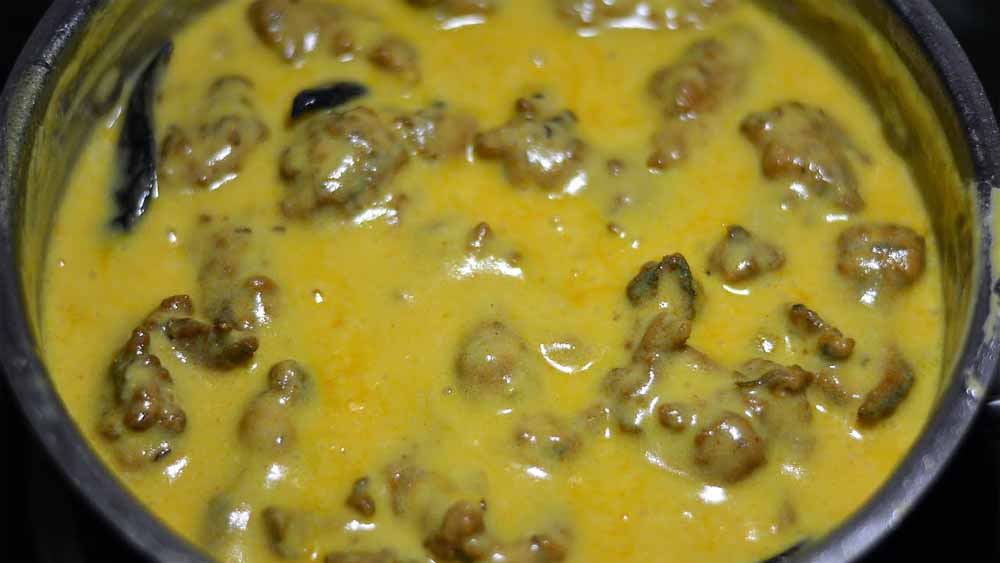 इसके बाद पकौड़ों को कढ़ी में डालकर पांच मिनट के लिए पकने दें।