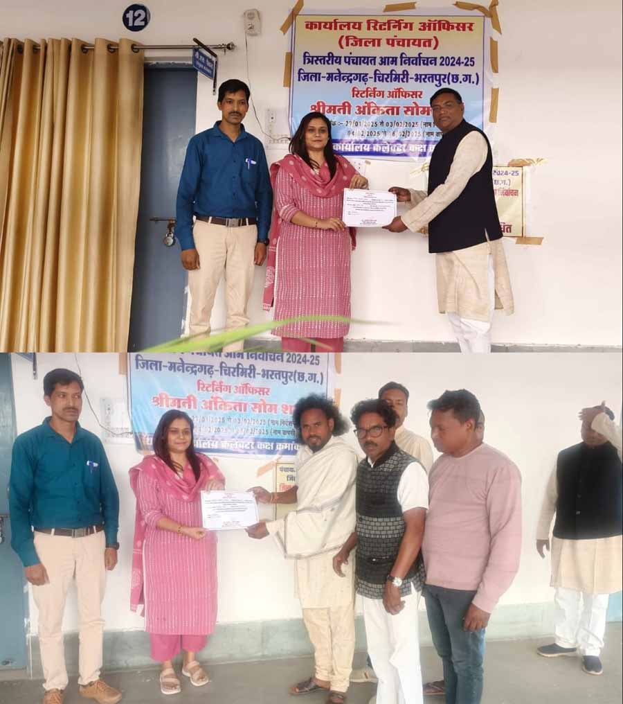 मनेंद्रगढ़ पंचायत निर्वाचन 2025: चार नवनिर्वाचित जिला पंचायत सदस्य को प्रदान किया प्रमाण पत्र