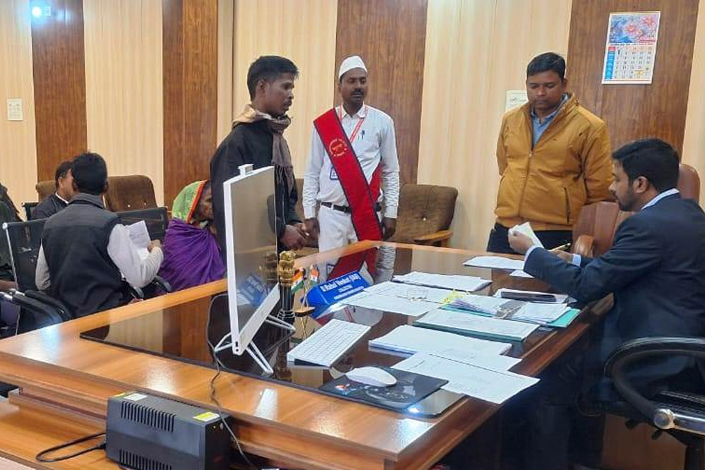 कलेक्टर डी. राहुल वेंकट ने आज कलेक्ट्रेट कार्यालय में जनदर्शन के माध्यम से आम नागरिकों की समस्याओं को सुना। जिले के ग्रामीण जन और नागरिकों ने जनदर्शन में अपनी छोटी-बड़ी समस्याओं को सीधे कलेक्टर के समक्ष रखा। कलेक्टर ने संबंधित अधिकारियों को प्राप्त सभी आवेदनों को प्राथमिकता के साथ शीघ्रता से समय-सीमा में निराकरण करने के निर्देश दिए हैं। जनदर्शन में आज कुल 17 आवेदन प्राप्त हुए। आज के जनदर्शन में आवेदक अहिबरन सिंह निवासी चैनपुर दोनों को एक पद से मुक्त करने के संबंध में, बाबू लाल निवासी खोंगापानी भूमि के संबंध में, हीरालाल निवासी मनेंद्रगढ़ नजूल प्रतिवेदन न दिये जाने के संबंध में, सतीश गुप्ता निवासी मनेंद्रगढ़ नई सब्जी मंडी में स्थित दुकान को आबंटित किये जाने के संबंध में, मेरी निवासी चनवारीडांड भूमि के संबंध में, सरिता द्विवेदी निवासी नई लेदरी उच्च स्तरीय जाँच के संबंध में, बैजनाथ निवासी खोंगापानी भूमि को ऑनलाइन कराने के संबंध में, रश्मि गुप्ता निवासी मनेंद्रगढ़ भूमि के संबंध में, विजय सिंह निवासी दुधासी भूमि के संबंध में, सैफ अली निवासी बिहारपुर मितानिन पद से मुक्त किये जाने के संबंध में, देव प्रसाद निवासी उजियारपुर भूमि के संबंध में, चंद्र प्रताप निवासी मुलुकनार भूमि के संबंध में, शिवनारायण यादव निवासी भुमका भूमि नक्शा सुधारने के संबंध में, हरि सिंह निवासी साल्ही ऑनलाइन रिकॉर्ड में नक्शा दुरूस्त न करने के संबंध में, अब्दुल अजीज निवासी मनेंद्रगढ़ चुनाव कार्य कराने के पक्षचात भी बस का कार्य का मानदेय नहीं बनाने के संबंध में, रमेश चंद्र निवासी मनेंद्रगढ़ सहकारी विपणन समिति के दुकानों को अनियमित रूप से लोगो को आबंटित करने के संबंध में, नकुल सिंह निवासी चनवारीडांड भूमि के संबंध में अपना शिकायत लेकर उपस्थित हुए थे।