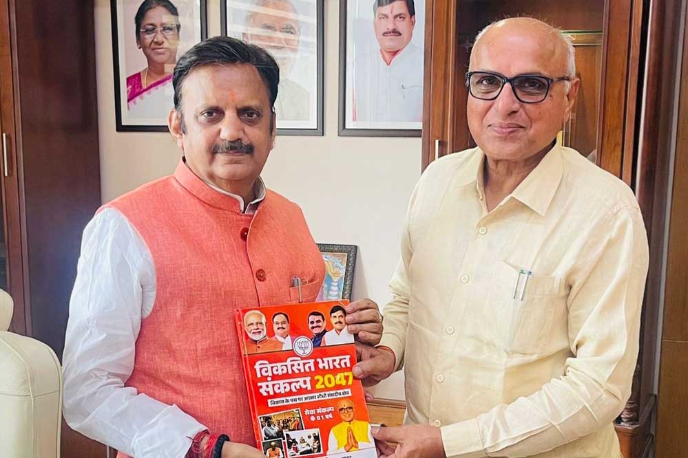 उप मुख्यमंत्री शुक्ल को सांसद डॉ. मिश्रा ने "विकसित भारत संकल्प-2047" पुस्तक भेंट की