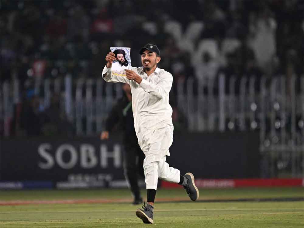 पाकिस्तान और दुबई में खेली जा रही है। इसी टूर्नामेंट का एक मुकाबला सोमवार 24 फरवरी को रावलपिंडी में बांग्लादेश और न्यूजीलैंड के बीच खेला गया। ग्रुप ए के इस मैच में जब न्यूजीलैंड की टीम टारगेट को चेज कर रही थी तो उस दौरान एक बड़ा सिक्योरिटी ब्रीच देखने को मिला, जब पाकिस्तान की एक पार्टी का एक समर्थक एक फोटो लेकर न्यूजीलैंड के खिलाड़ियों के पास पहुंच गया। पाकिस्तान क्रिकेट बोर्ड यानी पीसीबी ने फैंस की इस तरह की हरकत से बचने के लिए तमाम इंतजाम किए थे, लेकिन फिर भी सुरक्षा घेरा तोड़कर एक शख्स मैदान पर जा पहुंचा।