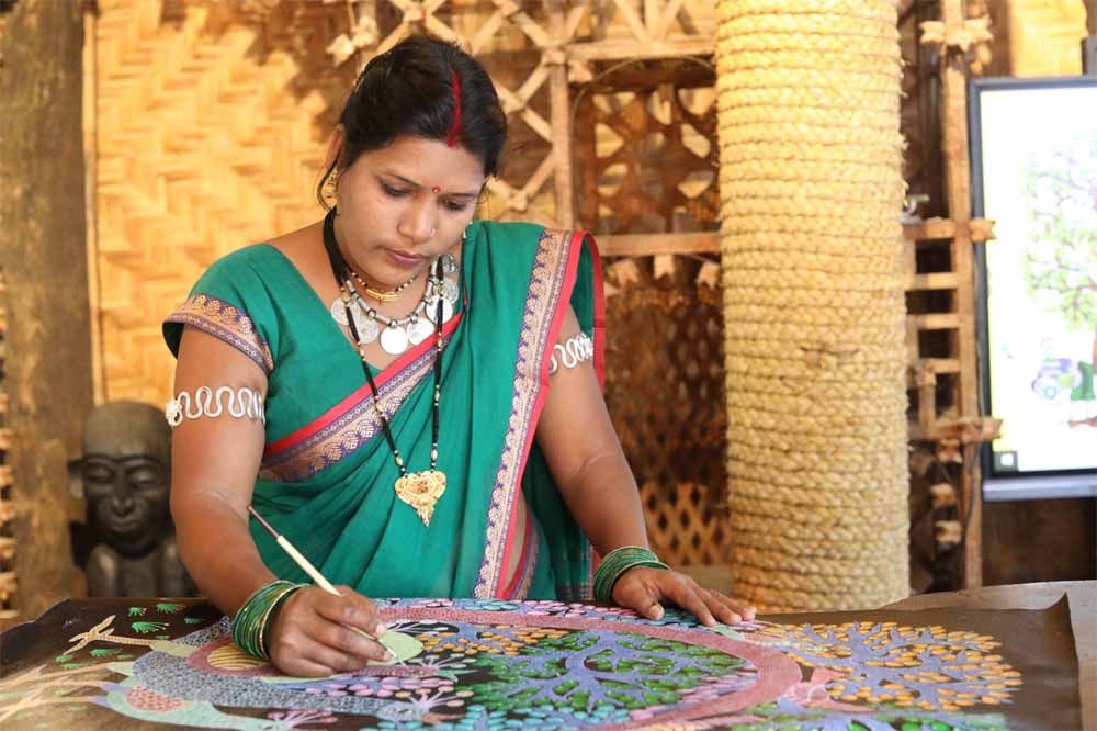 गोंड समुदाय की युवा चित्रकार सुश्री सुशीला श्याम के चित्रों की प्रदर्शनी सह-विक्रय का संयोजन किया गया