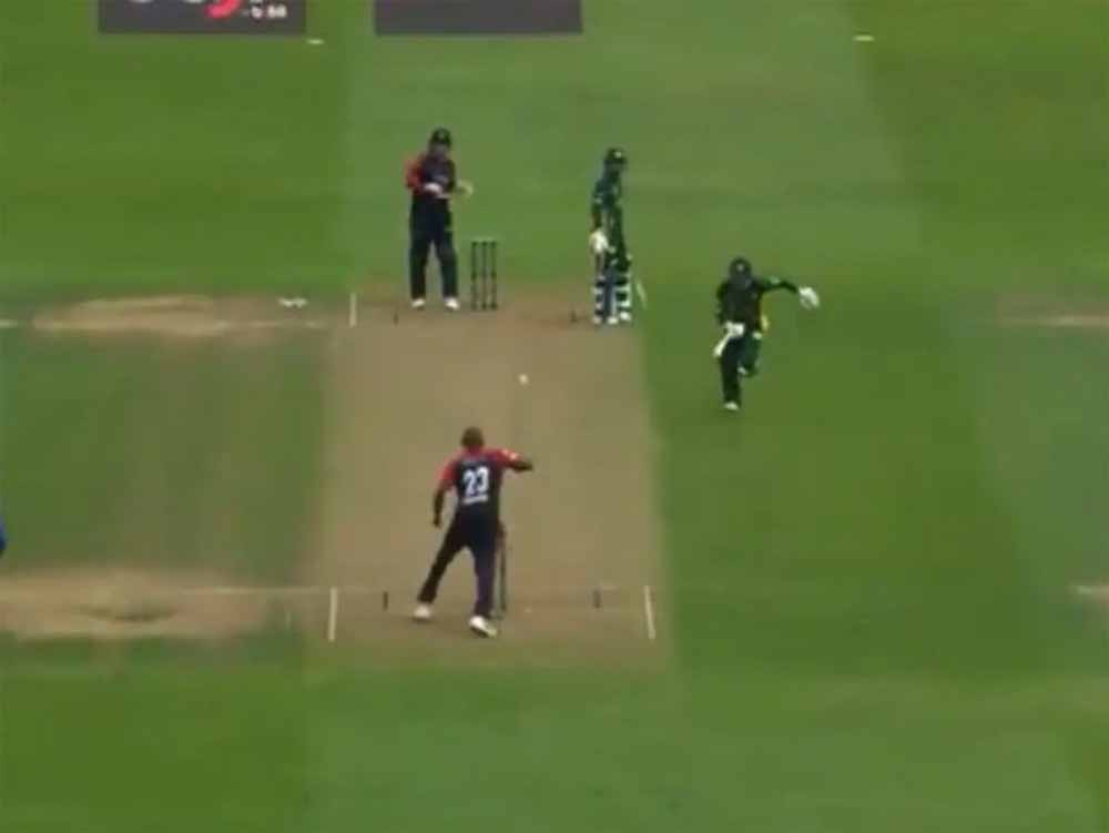 पाकिस्तान की पारी के 8वें ओवर में दिमित्री मस्कारेन्हास के खिलाफ मोहम्मद हफीज ने विकेट के पीछे शॉट मारकर एक रन चुराना चाहा। लेकिन गेंद सीधे फील्डर के हाथों में जाता देख उन्होंने अपना मन बदल लिया। इस बीच नॉन स्ट्राइकर एंड पर खड़े उमर अमीन उनके काफी करीब पहुंच गए थे। हफीज के मना करने पर वह वापस लौटे लेकिन तब तक काफी देर हो चुकी थी। उमर 9 गेंद में 6 रन ही बना सके। मैच की बात करें तो पाकिस्तान चैंपियन ने पहले बल्लेबाजी करते हुए 20 ओवर में 9 विकेट खोकर 160 रन बनाए। पाकिस्तान की ओर से कप्तान मोहम्मद हफीज ने सबसे ज्यादा 54 रन बनाए। वह 17वें ओवर में पवेलियन लौटे। इसके अलावा यामिन ने 13 गेंद में नाबाद 27 रन बनाए। इंग्लैंड चैंपियन के लिए ट्रेमलेट और प्लकेट ने 2-2 विकेट लिए।