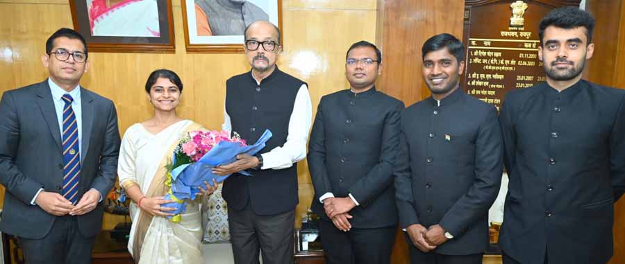 राज्यपाल रमेन डेका से आज राजभवन में भारतीय वन सेवा के 2023 बैच के परिवीक्षाधीन अधिकारियों ने सौजन्य भेंट की। श्री डेका ने उन्हें बधाई एवं शुभकामनाएं दी तथा भविष्य के लिए मार्गदर्शन भी दिया। श्री डेका ने कहा कि अपने कर्तव्यों का पालन ईमानदारी व अनुशासन के साथ करें । उन्होंने पर्यावरण संरक्षण पर विशेष ध्यान देने की समझाइश दी और कहा कि वनों की सुरक्षा और संरक्षण व देश के विकास के लिए बहुत महत्वपूर्ण है, इसलिए इस कार्य को अपना प्रथम कर्तव्य मानना चाहिए। राज्यपाल ने परिवीक्षाधीन अधिकारियों को अपने कार्य मेें नवाचार करने के लिए प्रेरित और प्रोत्साहित किया।