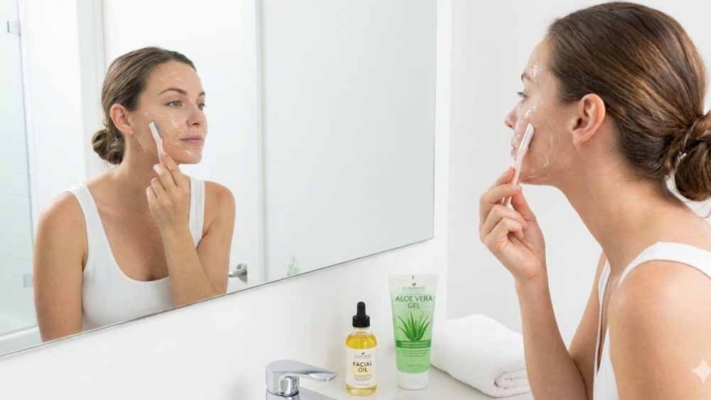 एक अच्छे हाइड्रेटिंग मॉइस्चराइजर या एलोवेरा जेल से चेहरे को अच्छी तरह हाइड्रेट करें।
