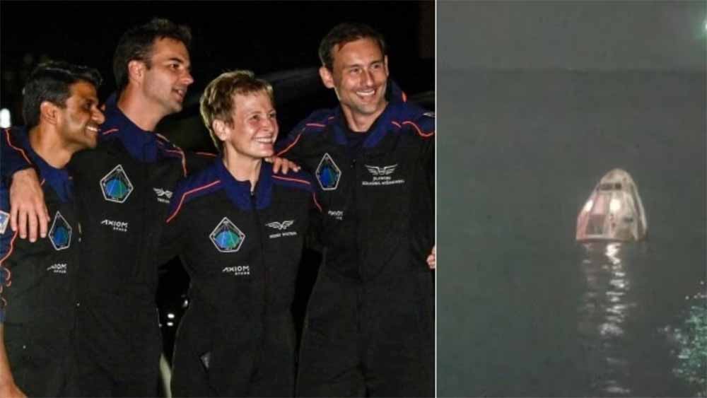 शुभांशु शुक्ला और एक्सिओम-4 के तीन अन्य अंतरिक्ष यात्री पृथ्वी पर पहुंचे, ड्रैगन अंतरिक्ष यान कैलिफोर्निया में समुद्र में उतरा। ड्रैगन अंतरिक्ष यान के धरती पर उतरते ही एक्सिओम-4 की कमांडर पैगी व्हिटसन ने कहा कि वापस आकर बहुत खुशी हो रही है।