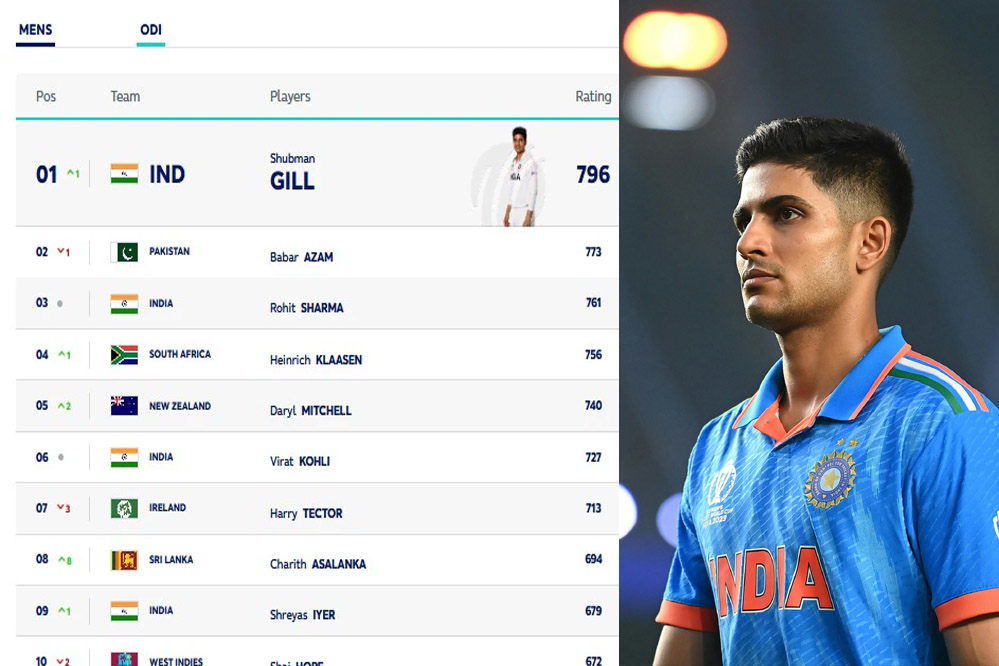गिल (रेटिंग- 796) पिछले कुछ समय से शानदार फॉर्म में हैं और हाल ही में इंग्लैंड के खिलाफ समाप्त हुई सीरीज के तीसरे वनडे के दौरान अहमदाबाद में इंग्लैंड के खिलाफ उनकी शतकीय पारी 25 साल के खिलाड़ी को रैंकिंग में शीर्ष पर पहुंचाने के लिए काफी थी.
