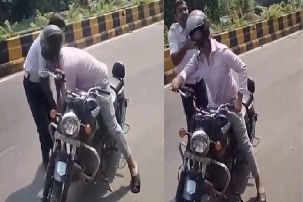बाइक सवार व्यक्ति से बदसलूकी करने वाले ट्रैफिक पुलिसकर्मी को एसएसपी ने किया निलंबित