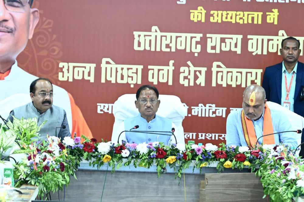 मुख्यमंत्री विष्णु देव साय की अध्यक्षता में छत्तीसगढ़ राज्य ग्रामीण एवं अन्य पिछड़ा वर्ग क्षेत्र विकास प्राधिकरण की प्रथम बैठक जिला मुख्यालय दुर्ग स्थित लोक निर्माण विभाग के सभाकक्ष में संपन्न हुई। बैठक में प्राधिकरण के अंतर्गत स्वीकृत प्रमुख विकास कार्यों, प्राधिकरण मद से निर्माणाधीन कार्यों के अनुमोदन, प्रावधानित बजट तथा नवीन स्वीकृत कार्यों की विस्तृत समीक्षा की गई।बैठक के दौरान जनप्रतिनिधियों द्वारा प्रस्तुत सुझावों पर विस्तार से चर्चा की गई। बैठक का मुख्य उद्देश्य प्रदेश के पिछड़ा वर्ग समुदाय के सामाजिक, आर्थिक एवं शैक्षणिक उत्थान हेतु संचालित योजनाओं की प्रगति का आकलन करना तथा भावी विकास रणनीतियों का निर्धारण करना था, ताकि विकास का लाभ वास्तविक हितग्राहियों तक प्रभावी रूप से पहुँच सके।