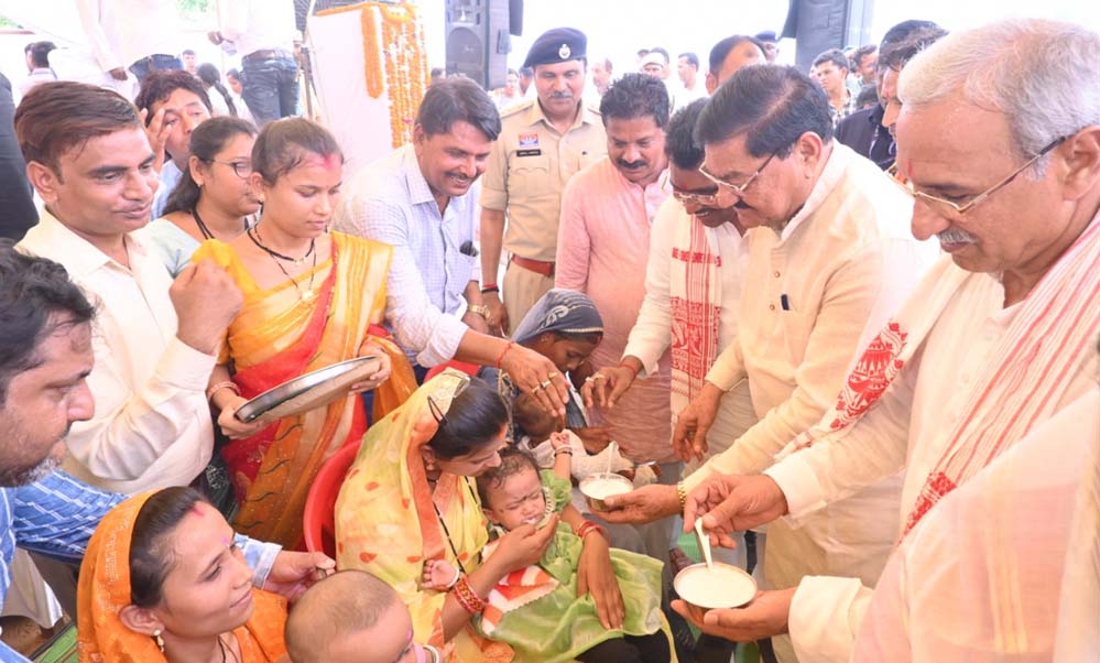 शिविर में प्रभारी मंत्री बघेल एवं विधायक ने 5 गर्भवती महिलाओं को पोषण आहार किट प्रदान कर गोदभराई रस्म एवं 2 शिशुओं का अन्नप्रासन किया। साथ ही उनके उत्तम स्वास्थ्य एवं उज्जवल भविष्य की शुभकामनाएं दी। साथ ही टीबी मुक्त भारत अभियान में उत्कृष्ट कार्य के लिए ग्राम पोंड, कुटेना, फुलझर एवं मुरमुरा के सरपंच, स्वच्छता के क्षेत्र में उत्कृष्ट कार्य करने वाले स्वच्छाग्राहियों एवं मेधावी विद्यार्थियों को सम्मानित किया। इसके अलावा हितग्राहियों को ट्रायसिकल, आइस बॉक्स सौर सुजला किट, मछली जाल जैसे सामग्री एवं राशन कार्ड का वितरण भी किया। इस अवसर पर विधायक साहू ने मुख्यमंत्री विष्णु देव साय के मंशानुरूप राज्य में शुरू किए गए सुशासन तिहार के आयोजन के उद्देश्यों के संबंध में विस्तार से जानकारी दी। उन्होंने सुशासन तिहार के आयोजन के निर्णय को राज्य सरकार के अत्यंत जनहितैषी एवं संवेदनशील निर्णय बताते हुए सराहना की। उन्होंने कहा कि इस सुशासन तिहार के माध्यम से राज्य सरकार के द्वारा शासकीय काम-काज में पारदर्शिता लाने तथा शासकीय योजनाओं और कार्यक्रमों का प्रभावी क्रियान्वयन सुनिश्चित करने का कारगर प्रयास किया जा रहा है। साथ ही प्रदेश में मोदी जी की गारंटी को तत्परता से पूर्ण किया जा रहा है।