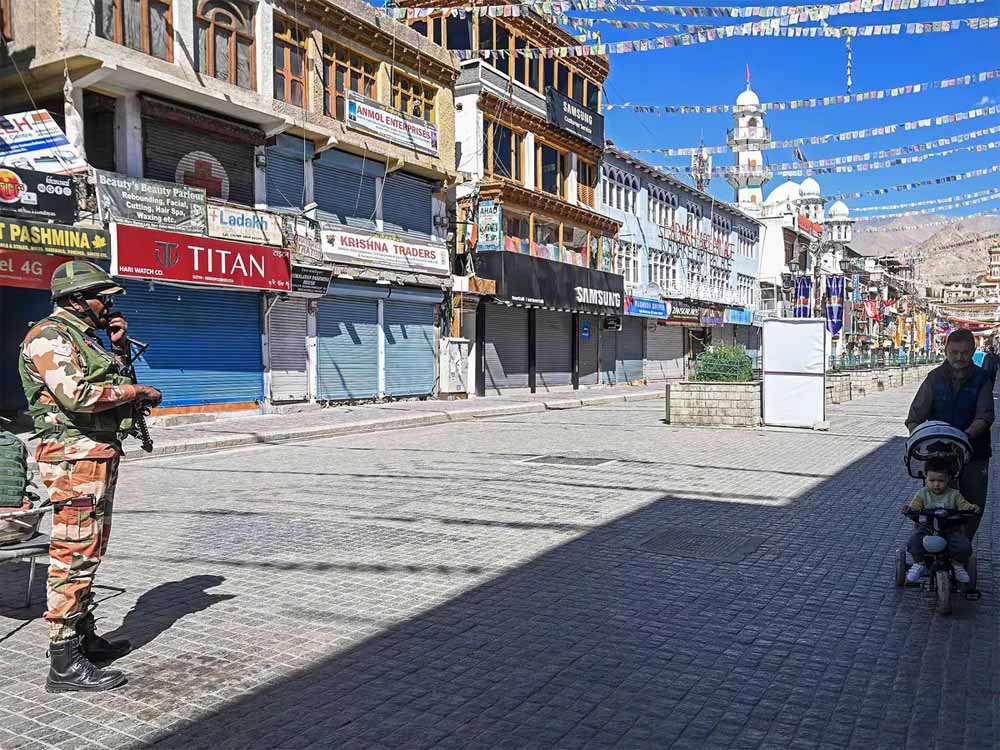 लद्दाख में हिंसा के बाद लगातार चौथे दिन भी कर्फ्यू जारी है। चारों ओर सन्नाटा पसरा है और सुरक्षाबल चप्पे-चप्पे पर नजर रख रहे हैं। पुलिस और अर्धसैनिक बलों ने एक दिन पहले राष्ट्रीय सुरक्षा कानून (एनएसए) के तहत जलवायु कार्यकर्ता सोनम वांगचुक को हिरासत में लिए जाने के बाद गश्त और जांच तेज कर दी है। अधिकारियों ने यह जानकारी दी। सोनम वांगचुक को गिरफ्तारी के बाद राजस्थान की जोधपुर जेल में भेज दिया गया है।