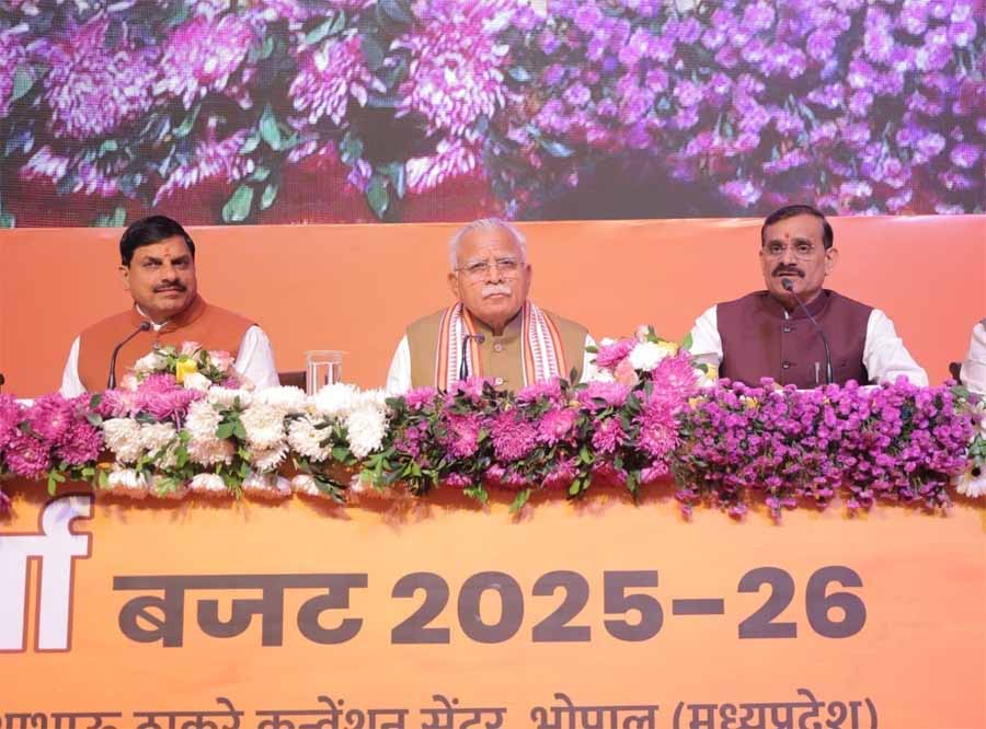 भारत सरकार के परमाणु ऊर्जा, आवास एवं शहरी कार्य विभाग के कैबिनेट मंत्री श्री मनोहरलाल खट्टर, मुख्यमंत्री डॉ. मोहन यादव एवं भारतीय जनता पार्टी के प्रदेश अध्यक्ष व खजुराहो सांसद श्री विष्णुदत्त शर्मा ने रविवार को कुशाभाऊ ठाकरे सभागार में वर्ष 2025-26 के केंद्रीय बजट को लेकर पत्रकार-वार्ता को संबोधित किया। केंद्रीय कैबिनेट मंत्री श्री मनोहरलाल खट्टर ने कहा कि कुछ नया और बड़ा सोचना प्रधानमंत्री श्री नरेंद्र मोदी जी के स्वभाव की विशेषता है। उन्होंने 2047 तक भारत को एक विकसित राष्ट्र बनाने का संकल्प लिया है, लेकिन विकसित राष्ट्र के कई मापदंड होते हैं। केंद्र सरकार का बजट इन सभी मापदंडों पर देश को आगे बढ़ाने वाला बजट है।