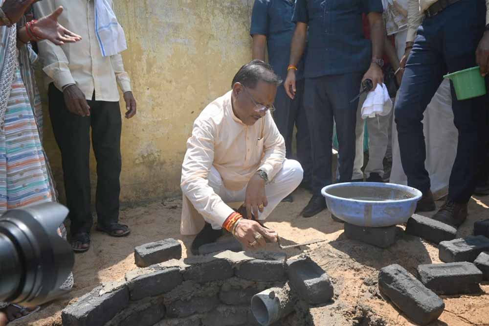 मुख्यमंत्री ने राज मिस्त्री बन सोखता गड्ढा के लिए की ईट जोड़ाई