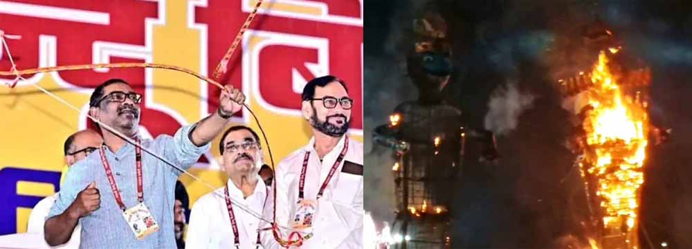 मुख्यमंत्री हेमंत सोरेन मोरहाबादी में पंजाबी-हिंदू बिरादरी दशहरा कमिटी एवं श्री दुर्गा पूजा एवं रावण दहन समिति, अरगोड़ा द्वारा आयोजित भव्य दशहरा एवं रावण दहन कार्यक्रम में मुख्य अतिथि के रूप में सम्मिलित हुए। मुख्यमंत्री हेमंत ने जैसे ही रिमोट का बटन दबाया, रावण, कुंभकर्ण और मेघनाद जल- जल उठे। पुतलों को जलाये जाने से पहले मोरहाबादी मैदान में जमकर आतिशबाजी हुई। सांस्कृतिक प्रस्तुतियां, भजन, नृत्य और रंगमंचीय झांकियों ने दर्शकों को मंत्रमुग्ध कर दिया। रावण के पुतलों के दहन के साथ ही मैदान जय श्री राम और हर-हर महादेव के नारों से गूंज उठा।