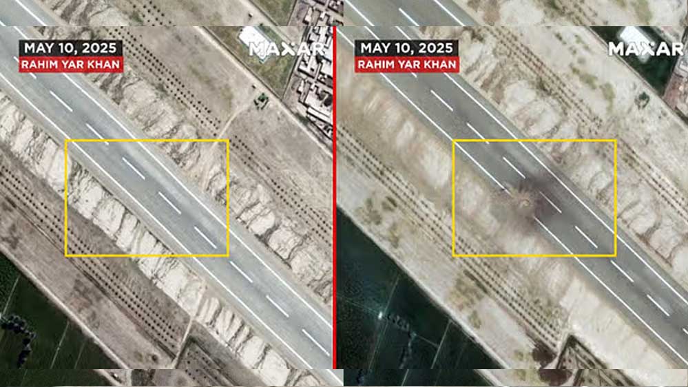 आजतक को मिलीं हाई-रिजॉल्यूशन सैटेलाइट तस्वीरों में यह साफ देखा जा सकता है कि एयरबेस के रनवे के बीचोंबीच एक बड़ा और गहरा गड्ढा बन गया है. इसके अलावा, एयरबेस की एक इमारत को भी गंभीर नुकसान पहुंचा है. गौरतलब है कि रहीम यार खान एक ऐसा एयरपोर्ट है जहां सैन्य हवाई अड्डे के साथ-साथ शेख जायद इंटरनेशनल एयरपोर्ट भी स्थित है.
