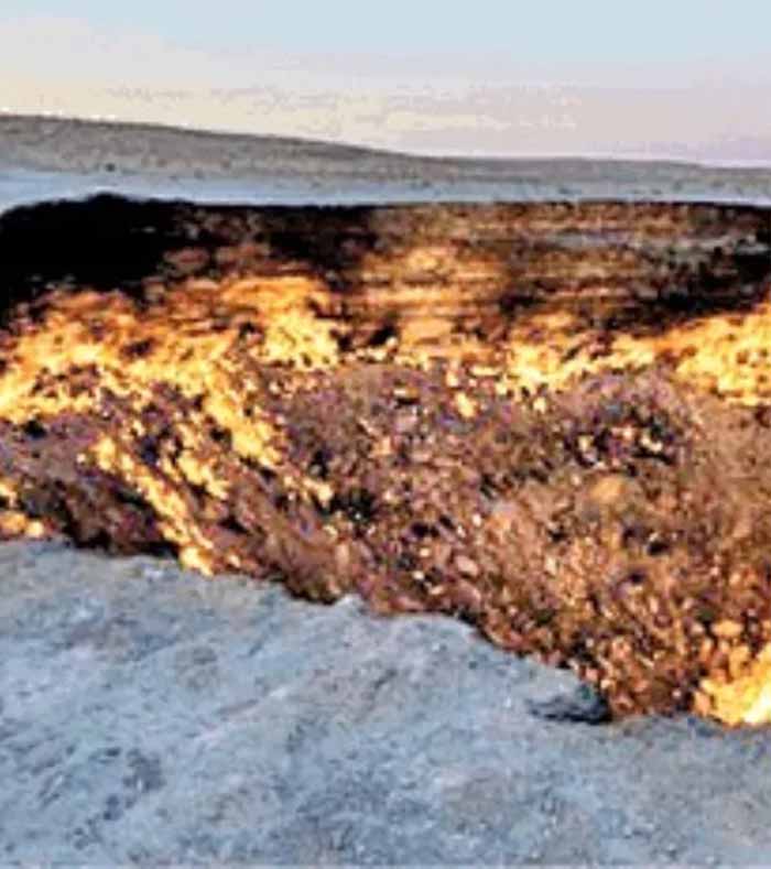 ‘गेटवे टू हेल’, जिसे आधिकारिक तौर पर ‘शाइनिंग ऑफ काराकुम’ के नाम से जाना जाता है। यह तुर्कमेनिस्तान के काराकुम रेगिस्तान में स्थित 230-फुट चौड़ा (70 मीटर) सिंकहोल है। यह गड्ढा मीथेन के विशाल भूमिगत भंडार से जुड़ा हुआ है, जिससे इसे जलाने के लिए गैस की लगभग असीमित आपूर्ति मिलती है। इस गड्ढे में सैकड़ों गैस की आग लगी हुई है, जो इसे एक अलौकिक चमक देती है।