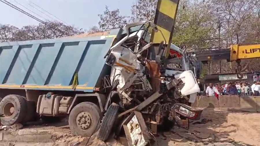 छत्तीसगढ़ के दुर्ग में आज सुबह तेज रफ्तार का कहर देखने को मिला है. एक ओवरलोड रेत से भरी हाईवा बाइक सवार को ठोकर मारते हुए एक लोहे के पोल से टकरा गई. टक्कर इतनी जबरदस्त थी कि हाईवा का सामने का हिस्सा पूरी तरह से अंदर धंस गया, और उसमें बैठे चालक और परिचालक दोनों अंदर फंस गए. दो घंटे की कड़ी मशक्कत के बाद पुलिस और एनडीआरएफ की टीम ने दोनों को बाहर निकाला.