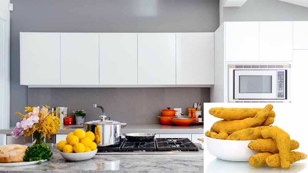 प्रतिदिन सुबह स्नान के बाद एक तांबे के लोटे में पानी भरकर उसमें चुटकी भर हल्दी मिलाएं और पूरे किचन में उसका छिड़काव करें। यह सूक्ष्म कीटाणुओं के साथ-साथ मानसिक नकारात्मकता को भी समाप्त करता है।