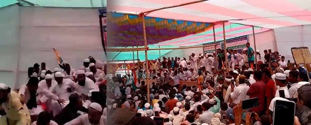 वक्फ कानून के खिलाफ आयोजित सभा, मंच पर काफी लोगों के जमा होने के कारण टूटा मंच