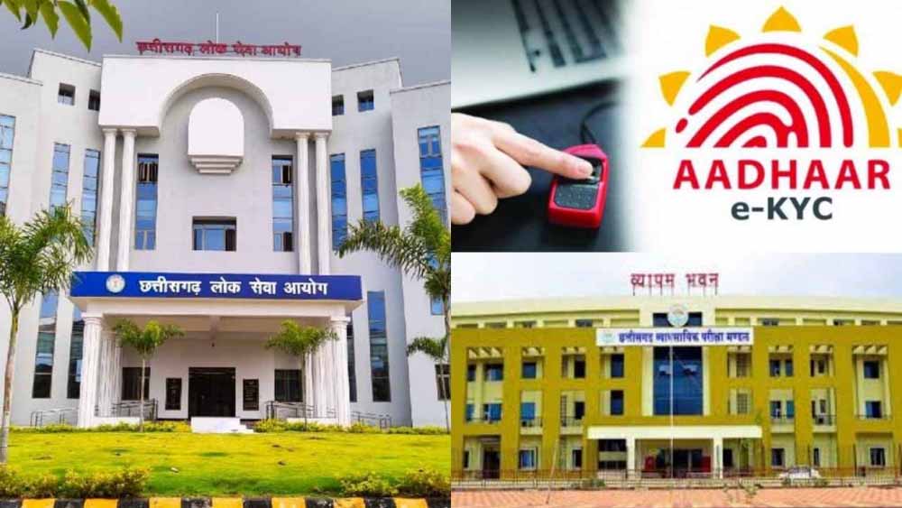 छत्तीसगढ़ लोक सेवा आयोग (सीजीपीएससी) और व्यावसायिक परीक्षा मंडल(व्यापमं) की तरफ से होने वाली भर्ती परीक्षाओं के लिए अब आधार कार्ड के जरिए ई-केवाईसी करवान अनिवार्य होगा। राज्य शासन की तरफ से इस संबंध में अधिसूचना जारी कर दी गई है।
