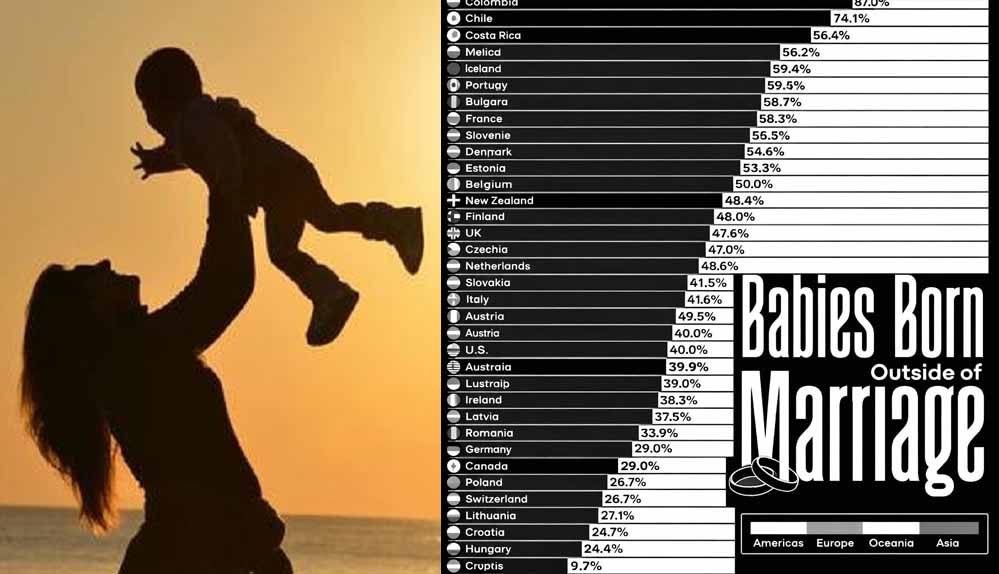 ओईसीडी (OECD) के नए आंकड़ों के अनुसार, विश्व के कई देशों में औसतन लगभग 43% बच्चे विवाह के बाहर पैदा हो रहे हैं। यानी बिना शादी के महिलाएं मां बन रही हैं। आइए जानते हैं कि इस मामले में कौन-से देश सबसे आगे हैं...