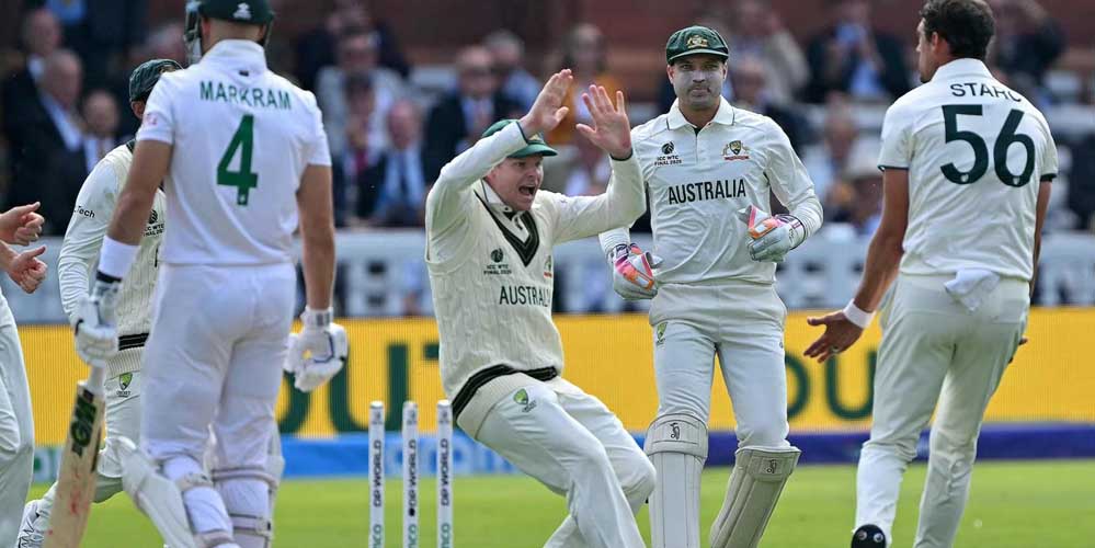साउथ अफ्रीका और ऑस्ट्रेलिया के बीच लॉर्ड्स के ऐतिहासिक मैदान पर वर्ल्ड टेस्ट चैंपियनशिप यानी WTC 2025 का फाइनल मुकाबला खेला जा रहा है। मैच के पहले दिन गेंदबाजों का कहर रहा, दोनों टीमों ने मिलकर कुल 255 रन बनाए और 14 विकेट गिरे। कगिसो रबाडा, मार्को येनसन और मिचेल स्टार्क पूरे मैच में छाए रहे। इस दौरान कई रिकॉर्ड्स बने, लेकिन इस बीच एक बड़ी ही विचित्र घटना घटी जिसे देखने के बाद हर कोई हैरान था। इंग्लैंड की सरजमीं पर 145 साल और 561 टेस्ट मैचों में ऐसा पहली बार देखने को मिला है।