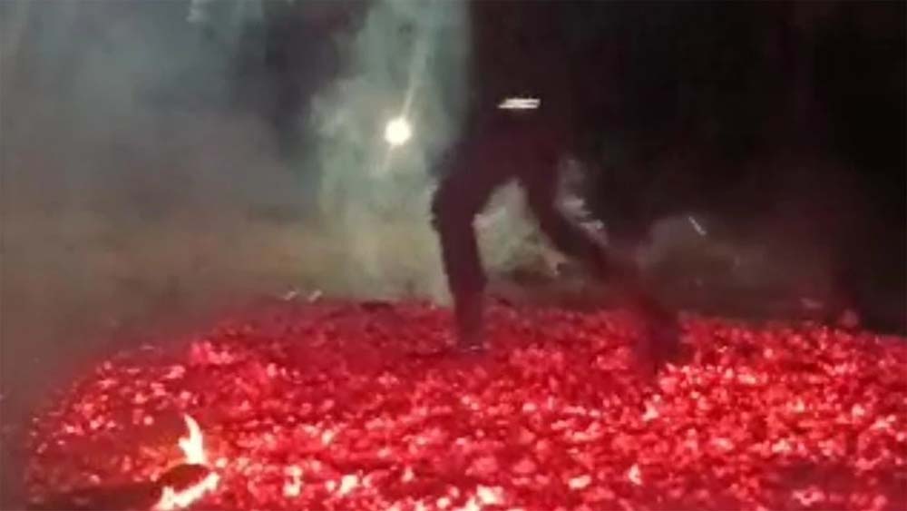 छत्तीसगढ़ की परंपरा : गांव में सुख-षांति स्थापित हो इसलिए गांव वाले होलीका दहन के बाद धधकते अंगारों पर नंगे पैर चलते है