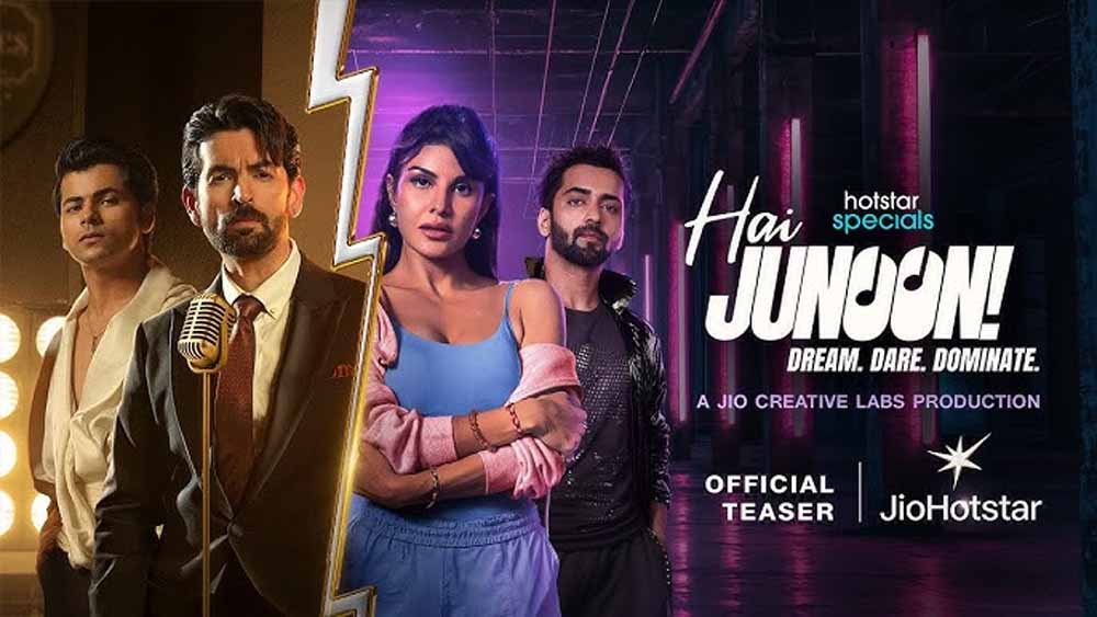 बॉलीवुड अभिनेत्री जैकलीन फर्नांडीस और अभिनेता नील नितिन मुकेश की नई म्यूजिकल ड्रामा सीरीज़ 'है जूनून – ड्रीम, डेयर, डॉमिनेट' का ट्रेलर रिलीज हो गया है। अभिषेक शर्मा निर्देशित और जियो क्रिएटिव लैब्स द्वारा निर्मित, सीरीज 'है जूनून- ड्रीम, डेयर, डॉमिनेट' आदित्य भट द्वारा बनाई गई है और इसमें जैकलीन फर्नांडीज, नील नितिन मुकेश, बोमन ईरानी, सुमेध मुदगलकर, सिद्धार्थ निगम, प्रियांक शर्मा सहित कई अन्य नई प्रतिभाओं सहित एक रोमांचक कलाकारों की टोली है। यह सीरीज मुंबई के प्रतिष्ठित एंडरसन्स कॉलेज की ऊर्जावान दुनिया पर आधारित है। यह कहानी उन युवाओं के सपनों को दिखाती है जो संगीत और डांस के जरिए अपनी पहचान बनाने की दौड़ में शामिल हैं। कॉलेज के म्यूजिक क्लब में हर दिन कुछ नया होता है। यहां सिर्फ टैलेंट काफी नहीं, असली पहचान उस जज्बे से बनती है जो आपको भीड़ से अलग करता है। 'है जूनून- ड्रीम, डेयर, डॉमिनेट' का ट्रेलर रिलीज हो गया है।