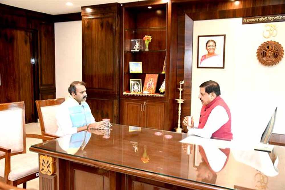 मुख्यमंत्री डॉ. यादव से केंद्रीय सूचना एवं प्रसारण राज्यमंत्री मुरुगन ने की सौजन्य भेंट