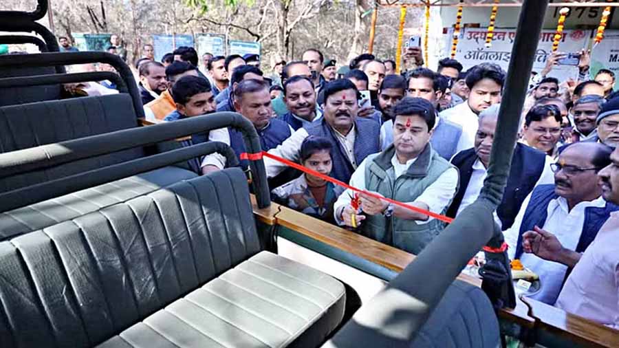 माधव नेशनल टाइगर रिजर्व में टाइगर सफारी वाहन को केंद्रीय मंत्री सिंधिया दिखाई हरी झंडी