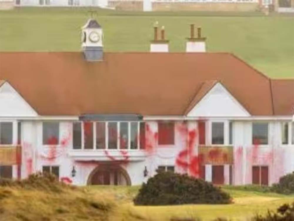 अमेरिका के राष्ट्रपति डोनाल्ड ट्रंप के स्कॉटलैंड स्थित टर्नबेरी गोल्फ रिजॉर्ट में की गई तोड़फोड़, फिलिस्तीन समर्थकों का उत्पात