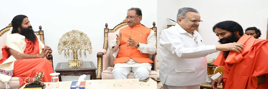 योग गुरु बाबा रामदेव ने मुख्यमंत्री निवास में सीएम साय से की सौजन्य मुलाकात